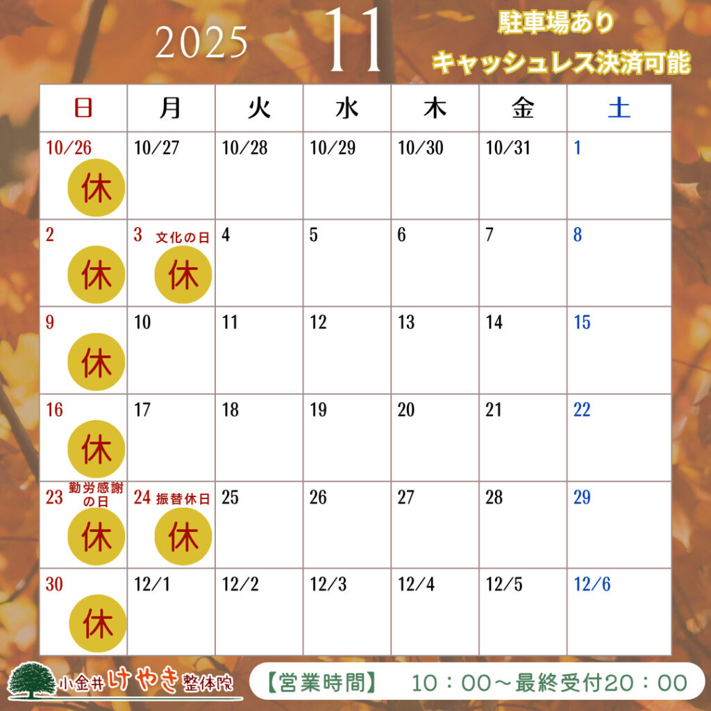 自律神経の乱れや、繰り返すコリや痛みで悩まれている方は、ぜひ一度お試しください。小金井けやき整体院が全力でサポートします!!