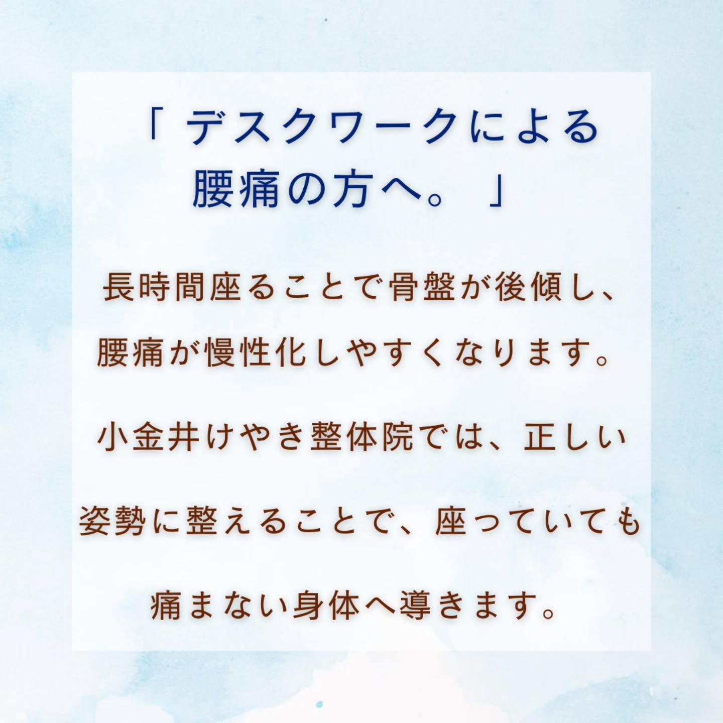 「デスクワークによる 腰痛の方へ。」