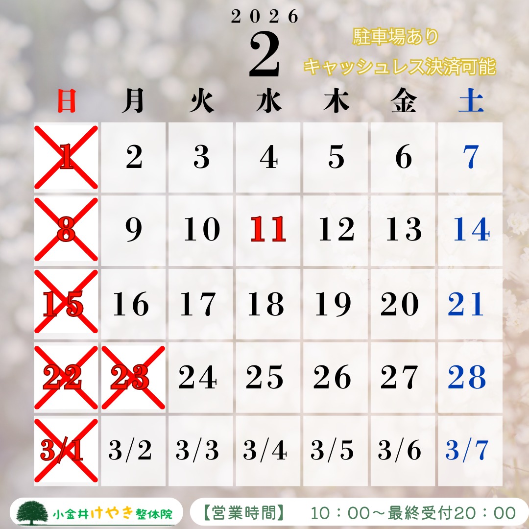 なお、2月11日(水)は祝日ですが、通常どおり営業いたします。