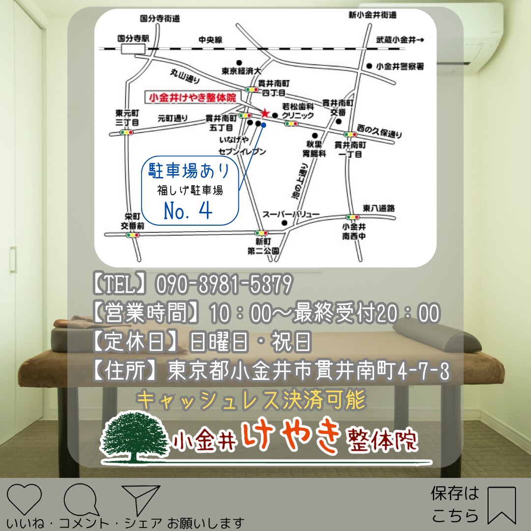 いつも小金井けやき整体院をご利用頂きありがとうございます。