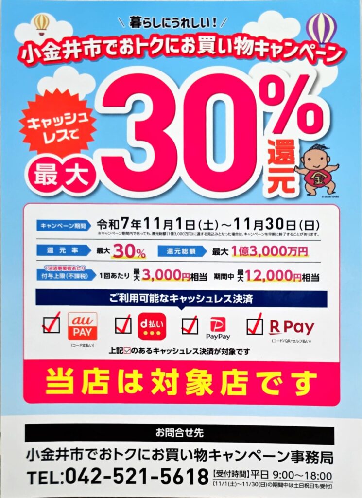 小金井けやき整体院は、「暮らいにうれしい」小金井市でおトクにお買い物キャンペーンの対象店になります。